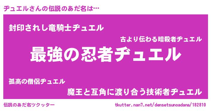 | ヒーロー風カッコイイあだ名 | 『ウルトラヂュエルマン』『ネオヂュエル』 |