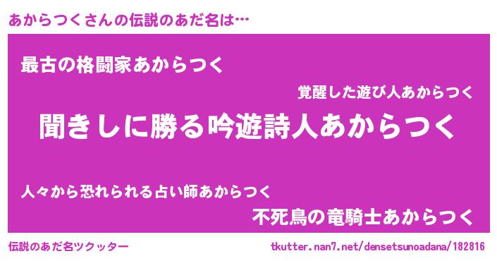 | ヒーロー風カッコイイあだ名 | 『ネオアカラツク』『仮面アカダー』 |