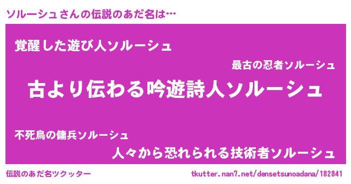 | 意味不明あだ名 | 『自称ソルーシュ』『永久保存ソルーシュ』 |