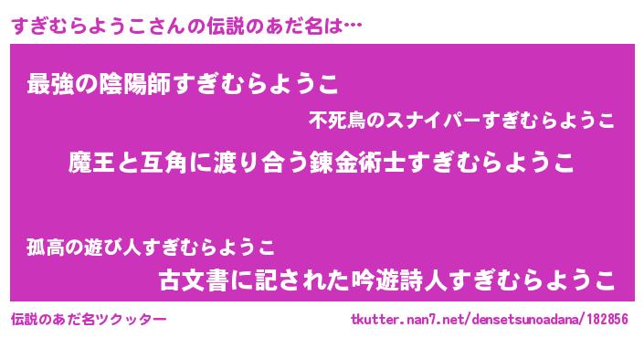 | 意味不明あだ名 | 『住所不定無職すぎむらようこ(86歳)』 |