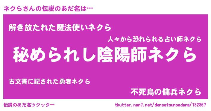 | ファンタジー風あだ名 | 『カークネクラー』『エターナルネクラー』 |