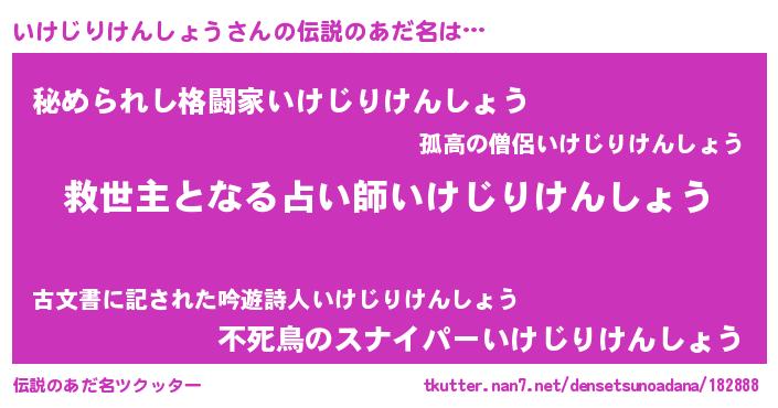| 胡散臭い通販商品みたいなあだ名 | 『あなたにだけ特別に提供する限定10本のレアな日本酒…その名も「いけじりけんしょう」』 |
