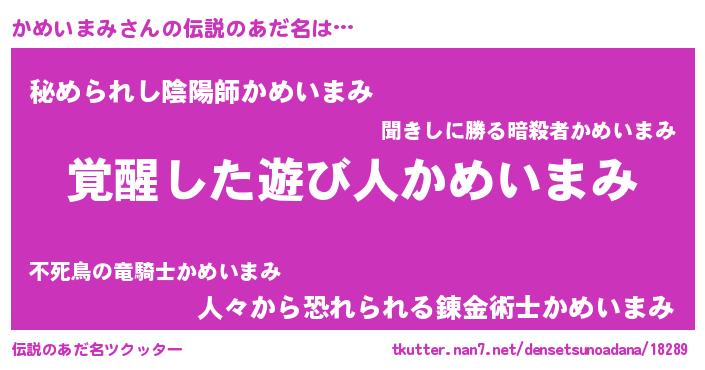 | 男性向けラノベタイトル風あだ名 | 『かめいまみ~年齢イコール彼女いない歴の魔法使い~』 |