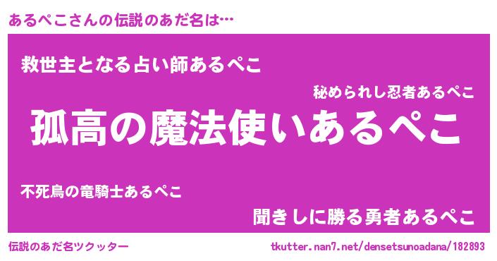 | 意味不明あだ名 | 『とにかく怪しいあるぺこ』 |