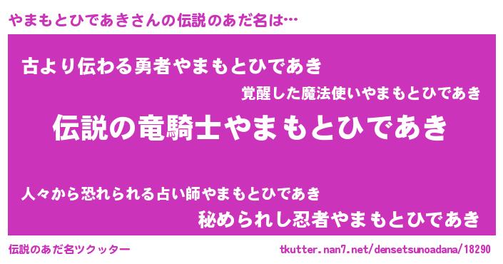 | ヘコむあだ名 | 『やまにー』『やまもとひであき(遠い目)』 |