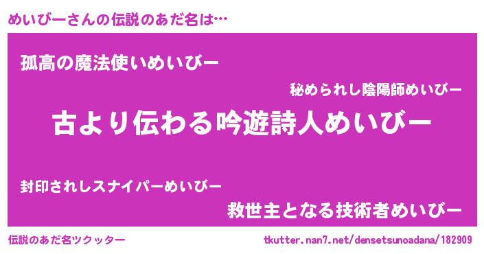 | 意味不明あだ名 | 『永久保存めいびー』 |