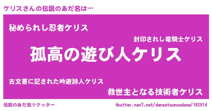 | 意味不明あだ名 | 『とにかく怪しいケリス』『自称ケリス』 |