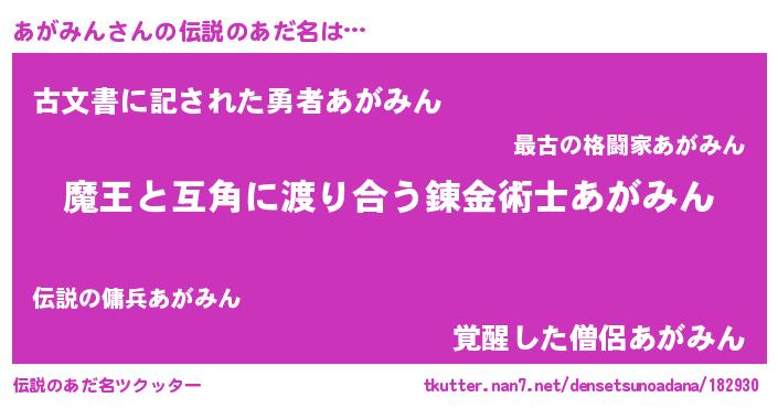 | ヘコむあだ名 | 『あがみん(遠い目)』『あがぷりん』 |
