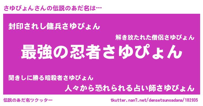 | 男性向けラノベタイトル風あだ名 | 『うちのさゆぴょんが世界を掌握している!』 |