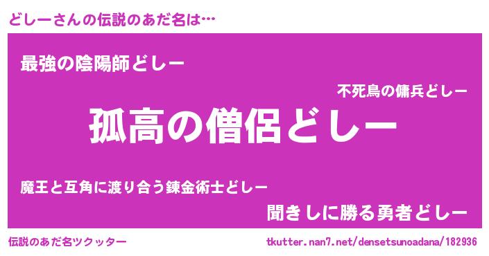 | 女子向けラノベタイトル風あだ名 | 『どしーは平凡を望む』『闇のどしー』 |