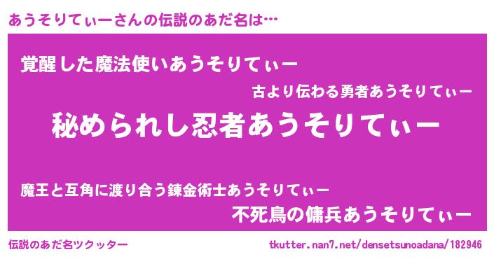 | 意味不明あだ名 | 『自称あうそりてぃー』 |