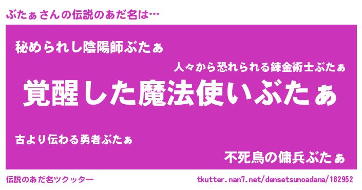 | 女子向けラノベタイトル風あだ名 | 『ぶたぁ様がみてる』 |
