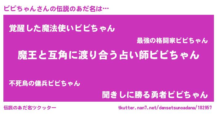 | 意味不明あだ名 | 『眠気覚ましガムビビちゃん味』 |