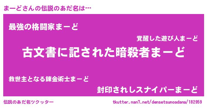 | 意味不明あだ名 | 『永久保存まーど』『自称まーど』 |