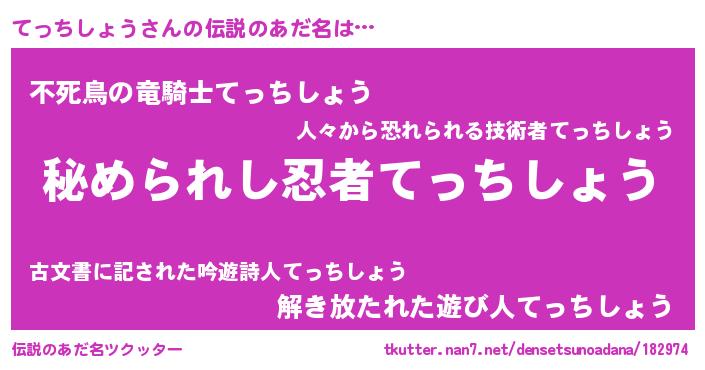 | 意味不明あだ名 | 『住所不定無職てっちしょう(62歳)』 |