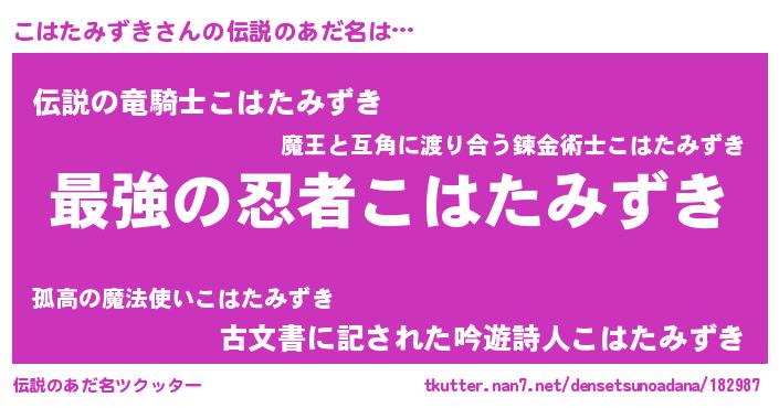 | 意味不明あだ名 | 『自称こはたみずき』 |