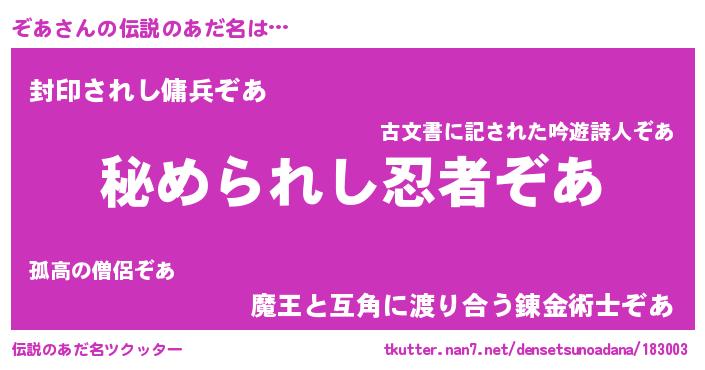 | 女子向けラノベタイトル風あだ名 | 『ぞあなんてお断りですっ。』 |