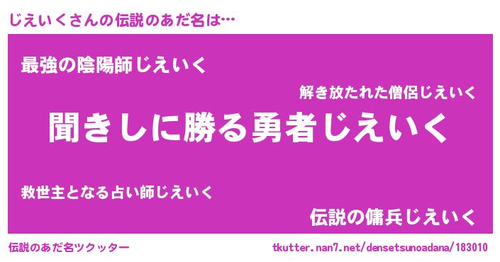 | 胡散臭い通販商品みたいなあだ名 | 『絶対に幸福をもたらす水素水…その名も「じえいく」』 |