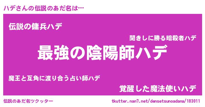 | ヒーロー風カッコイイあだ名 | 『究極戦士ハデ』『ウルトラハデマン』 |