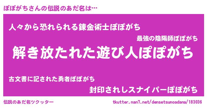 | ヒーロー風カッコイイあだ名 | 『ウルトラ戦士ポポガチ』『魔戒騎士ポポ』 |