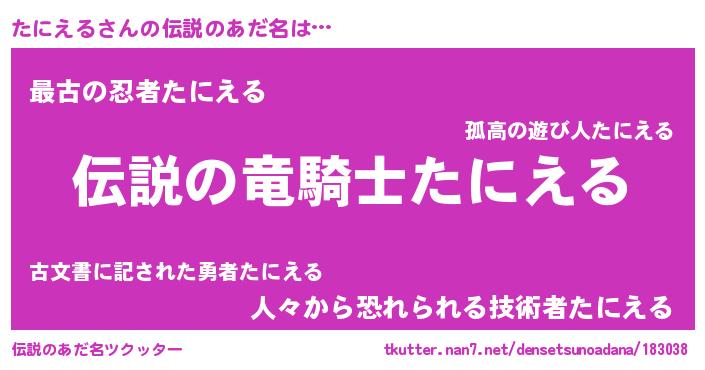 | 男性向けラノベタイトル風あだ名 | 『たにえるの憂鬱』『魔弾の王とたにえる』 |