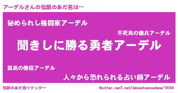 | 意味不明あだ名 | 『永久保存アーデル』 |