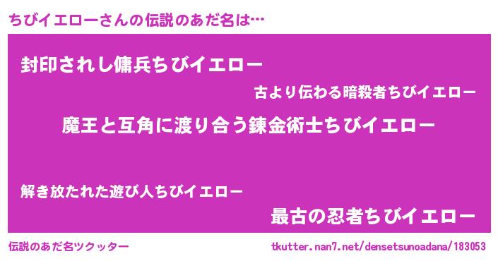 | 男性向けラノベタイトル風あだ名 | 『転生したらちびイエローだった件』 |