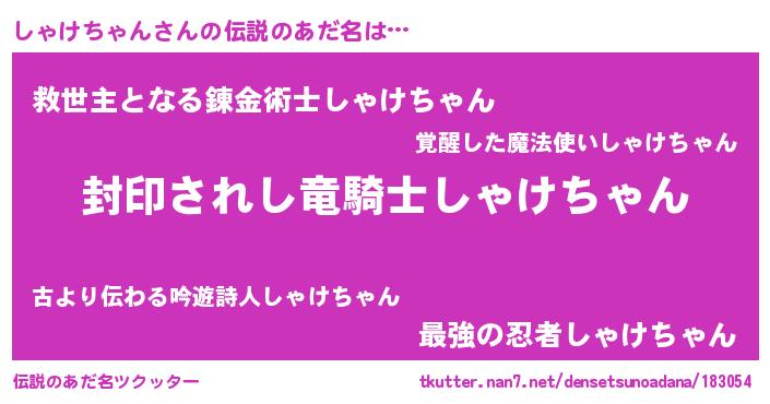| ヒーロー風カッコイイあだ名 | 『スーパーシャケチャン』『仮面シャダー』 |