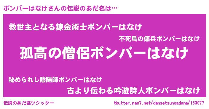 | 意味不明あだ名 | 『とにかく怪しいボンバーはなけ』 |
