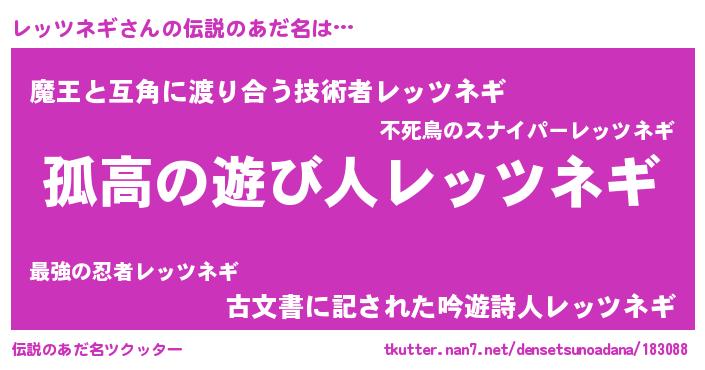 | 意味不明あだ名 | 『自称レッツネギ』『永久保存レッツネギ』 |
