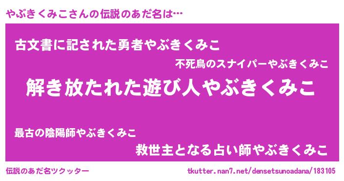 | 意味不明あだ名 | 『とにかく怪しいやぶきくみこ』 |