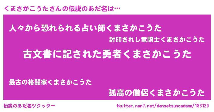 | 意味不明あだ名 | 『住所不定無職くまさかこうた(91歳)』 |