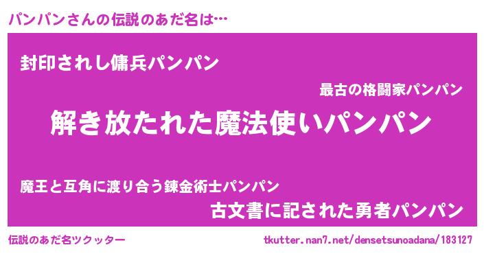 | 胡散臭い通販商品みたいなあだ名 | 『伝統あるサプリメント…その名も「パンパン」』 |
