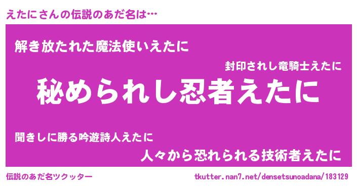 | 女子向けラノベタイトル風あだ名 | 『えたにの雑貨屋さん』 |