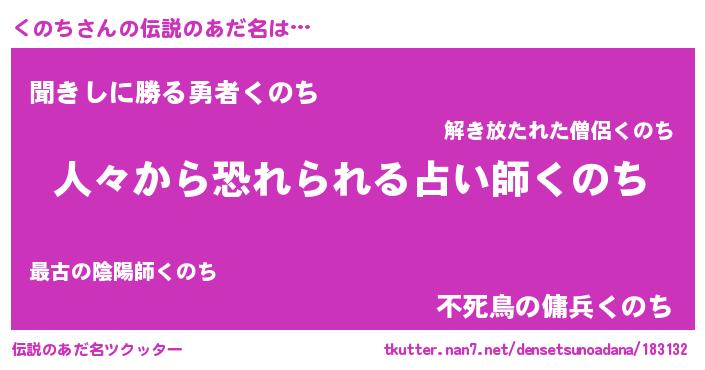 | 意味不明あだ名 | 『自称くのち』『眠気覚ましガムくのち味』 |