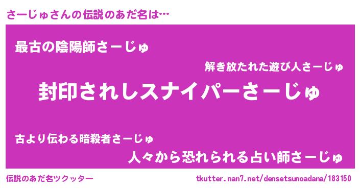 | 男性向けラノベタイトル風あだ名 | 『さーじゅに滅ぼされるだけの簡単なお仕事です』 |
