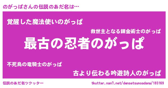 | ヒーロー風カッコイイあだ名 | 『ウルトラのがっぱマン』『銀牙騎士ノガ』 |