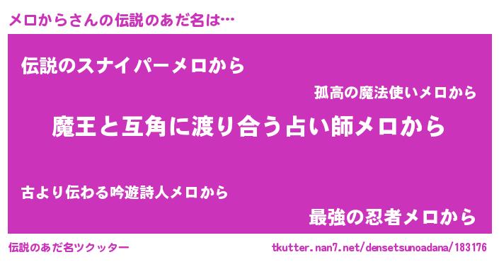 | 男性向けラノベタイトル風あだ名 | 『冴えないメロからの育てかた』 |