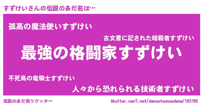 | ファンタジー風あだ名 | 『エターナルスズケイー』『ゼスズトゥ』 |