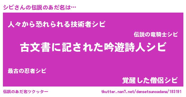 | 意味不明あだ名 | 『永久保存シビ』『眠気覚ましガムシビ味』 |