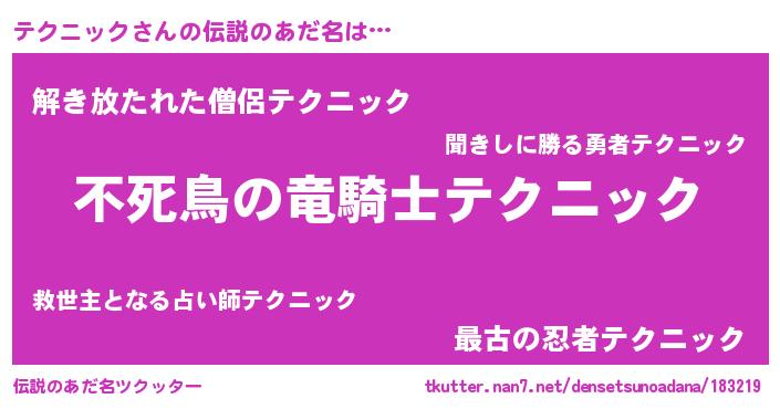 | 胡散臭い通販商品みたいなあだ名 | 『世界中を虜にした100年もののヴィンテージワイン…その名も「テクニック」』 |