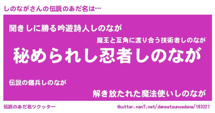 | 欧米人風あだ名 | 『しのながクリステル』 |