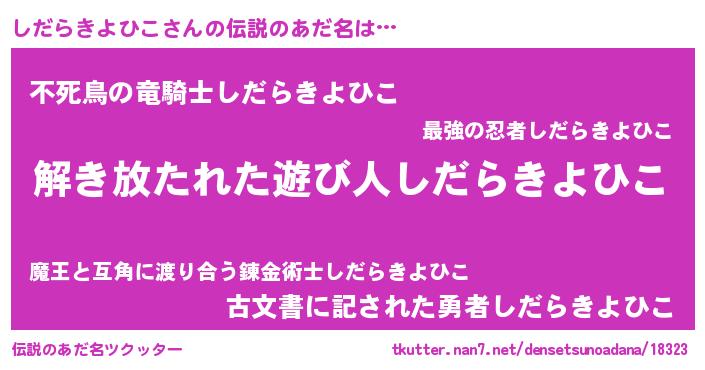 | 意味不明あだ名 | 『とにかく怪しいしだらきよひこ』 |