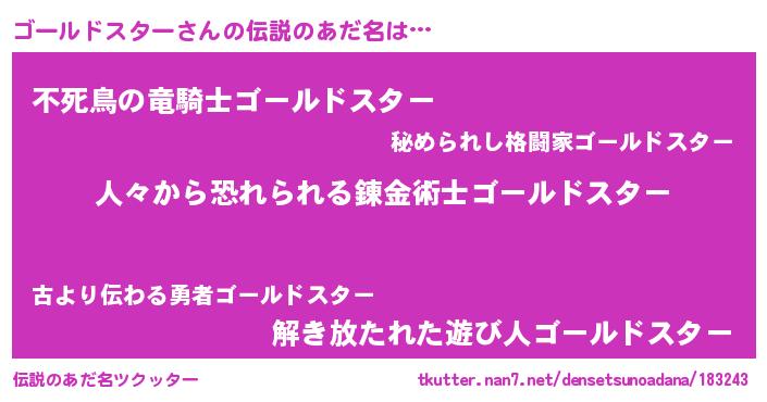 | ヒーロー風カッコイイあだ名 | 『正義の使者ゴールドスター』 |