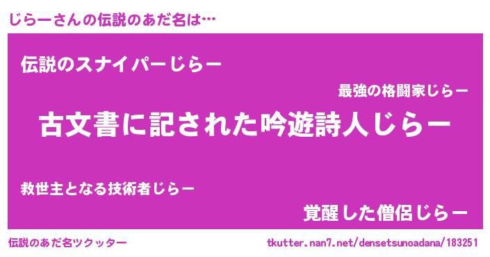 | ヘコむあだ名 | 『じらー(小並感)』『じらっふぃ~』 |