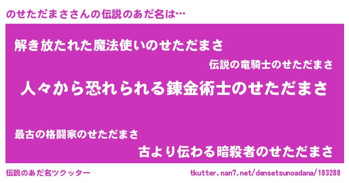 | ヒーロー風カッコイイあだ名 | 『正義の使者のせただまさ』 |