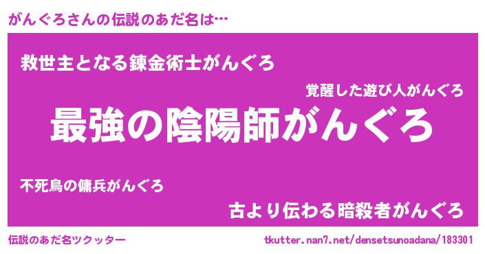 | ファンタジー風あだ名 | 『エターナルガングロー』『クインガット』 |