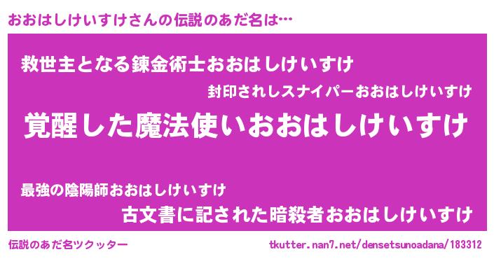 | 意味不明あだ名 | 『とにかく怪しいおおはしけいすけ』 |