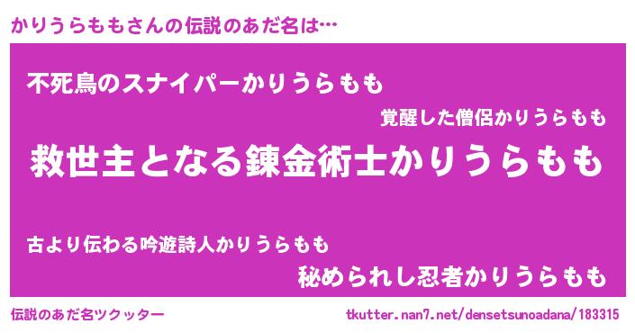 | 意味不明あだ名 | 『自称かりうらもも』 |