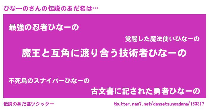 | ヒーロー風カッコイイあだ名 | 『愛の使者ひなーの』『ネオヒナーノ』 |